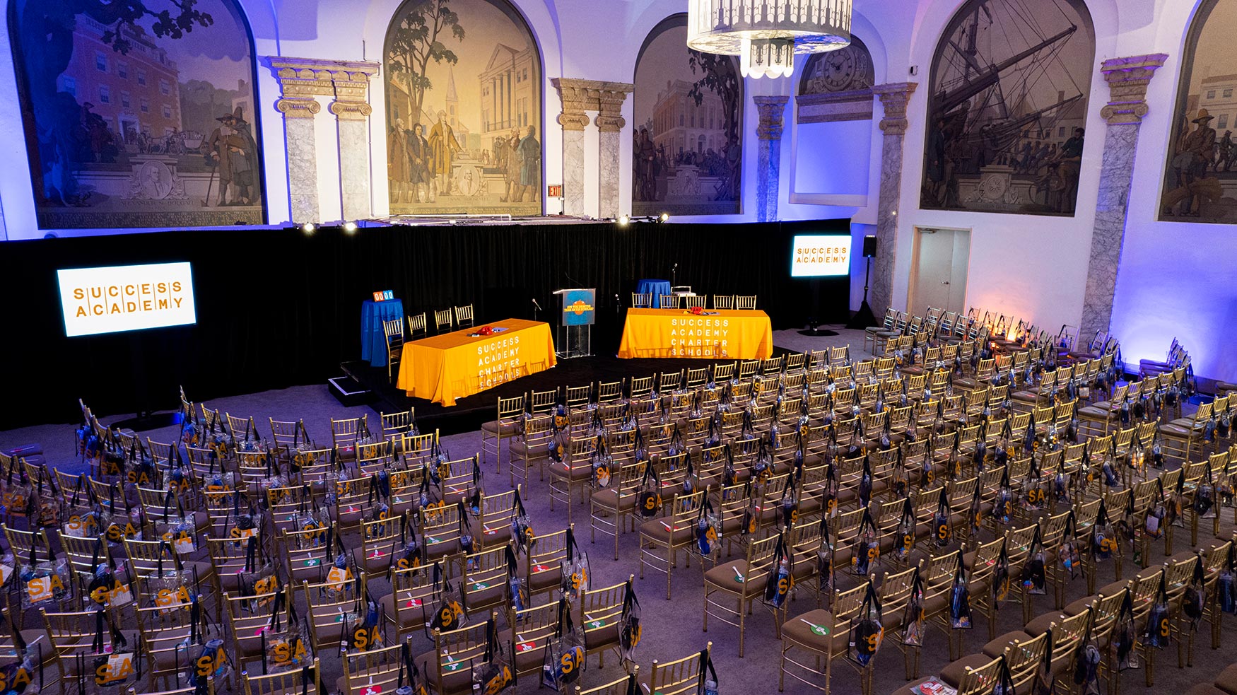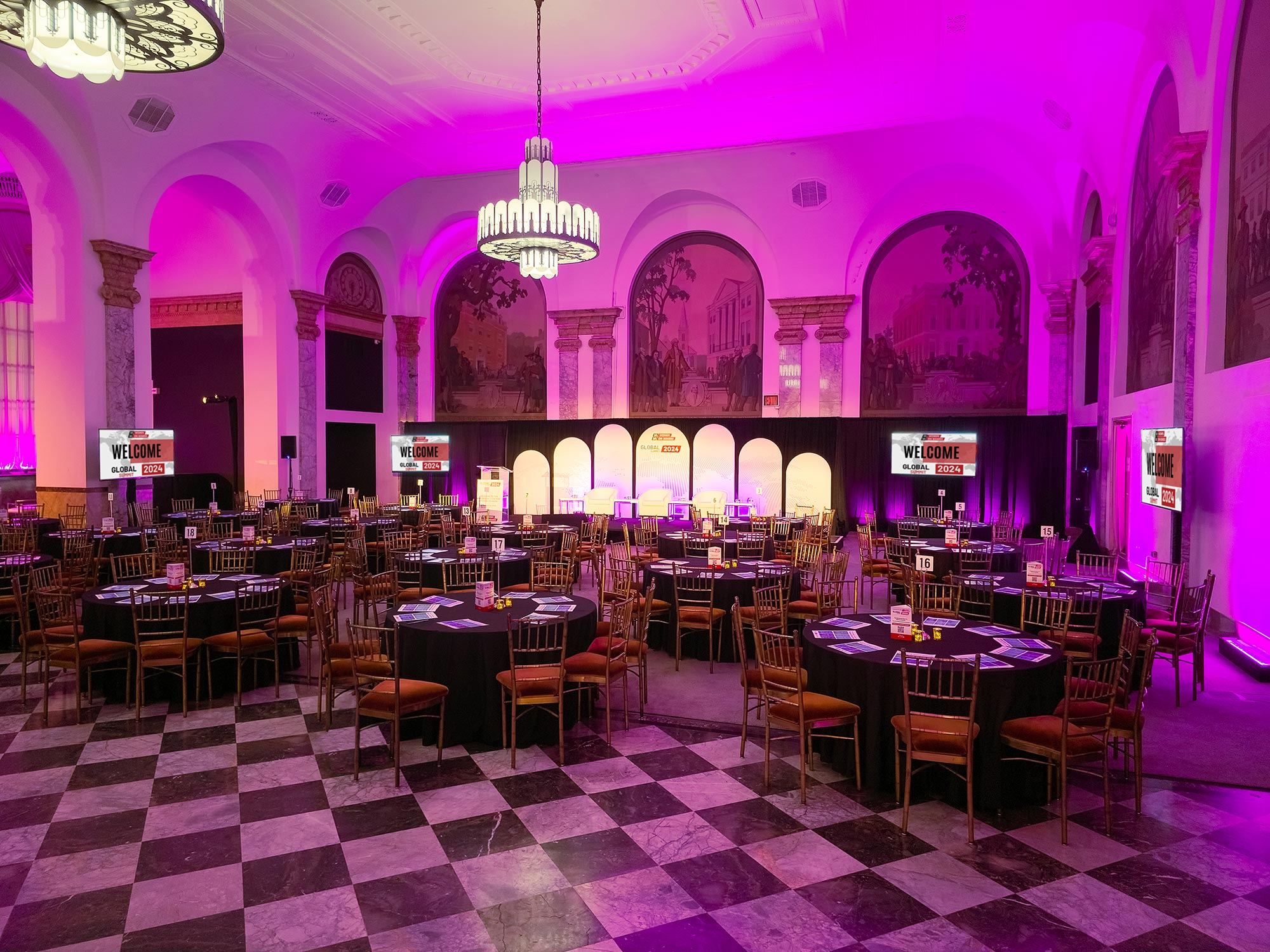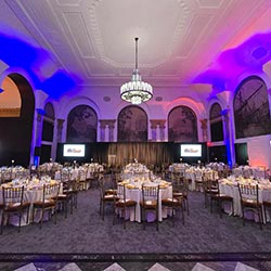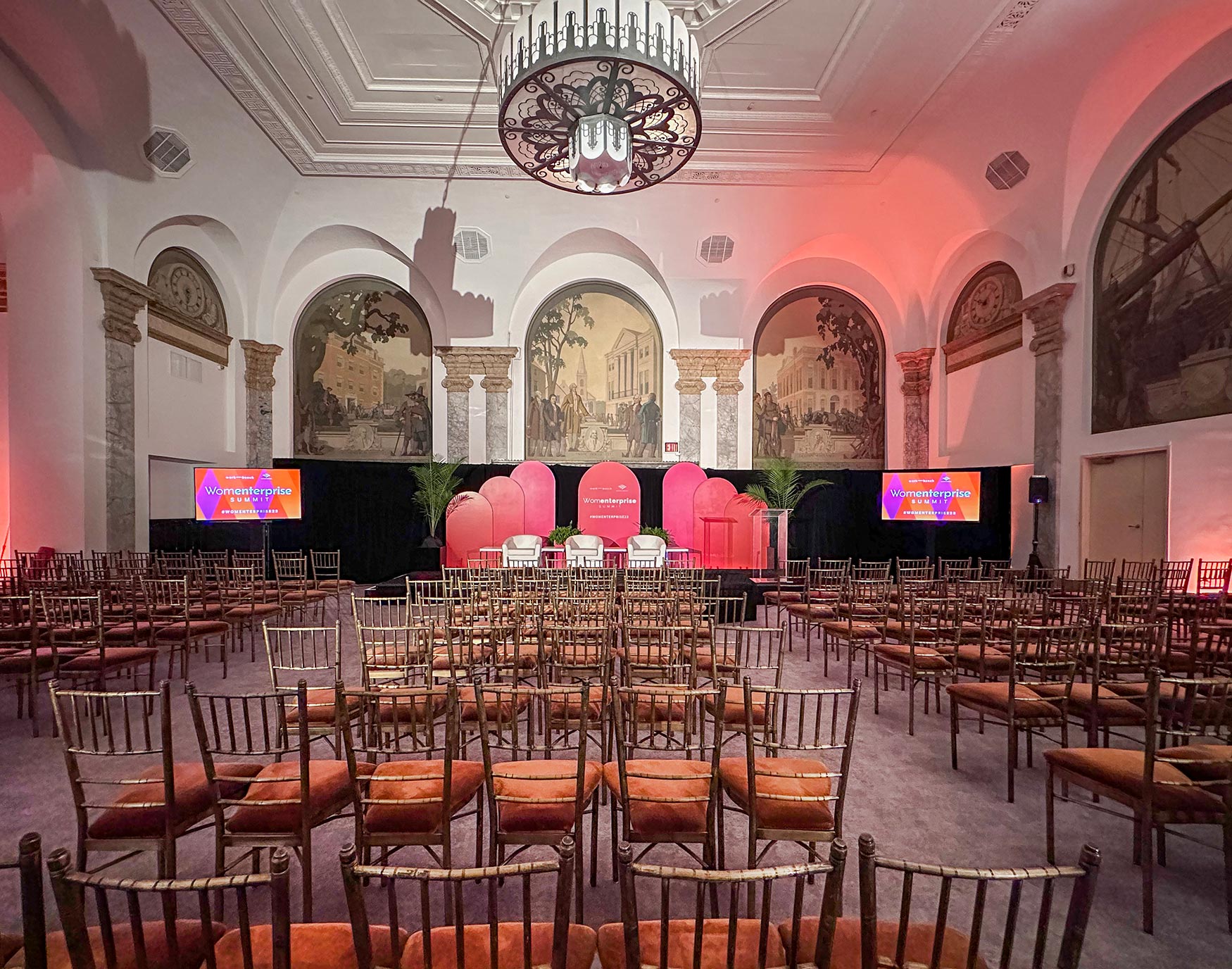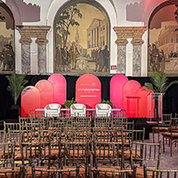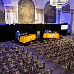 As your peers and colleagues walk up the grand staircase into the space, the atmosphere immediately inspires the entrepreneur in all of us. his historic venue seamlessly blends elegance and modern functionality, providing state-of-the-art audiovisual capabilities, flexible seating arrangements, and high-end amenities to accommodate events of any scale. With its iconic architecture and central location, 48 Wall Street sets the stage for impactful discussions, professional connections, and memorable event experiences.