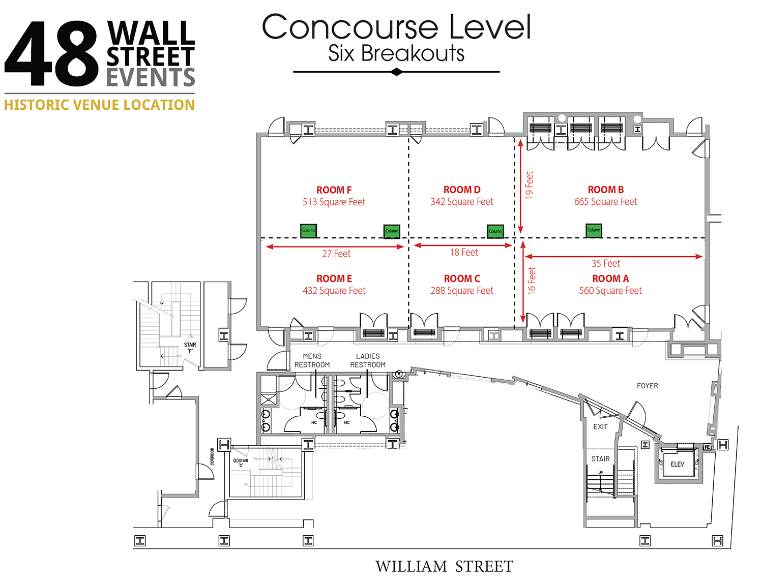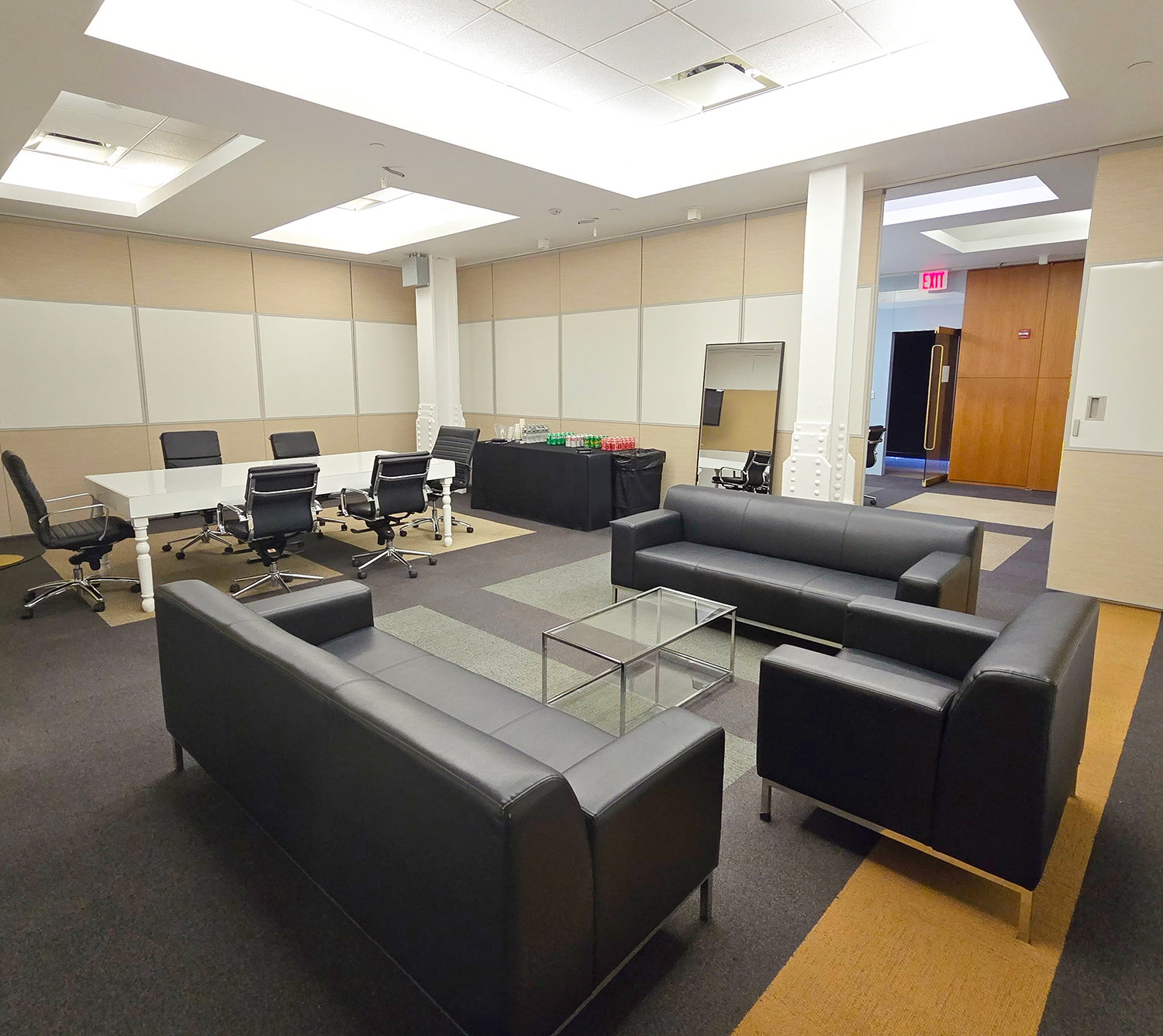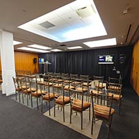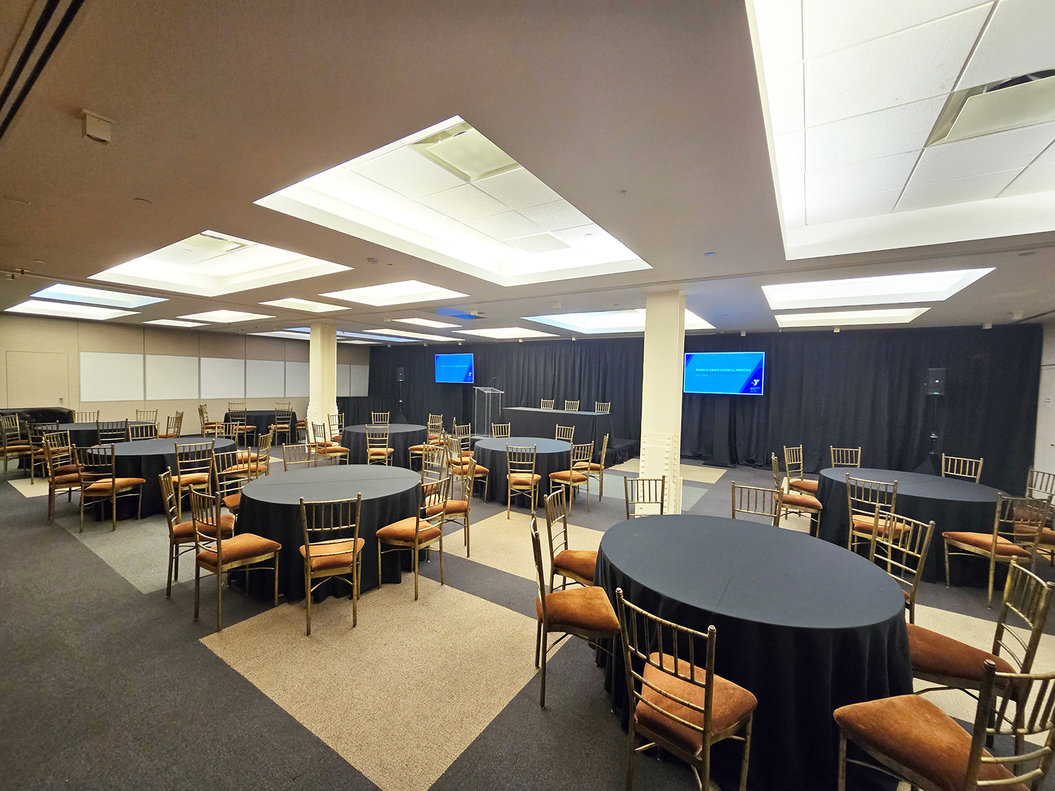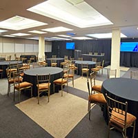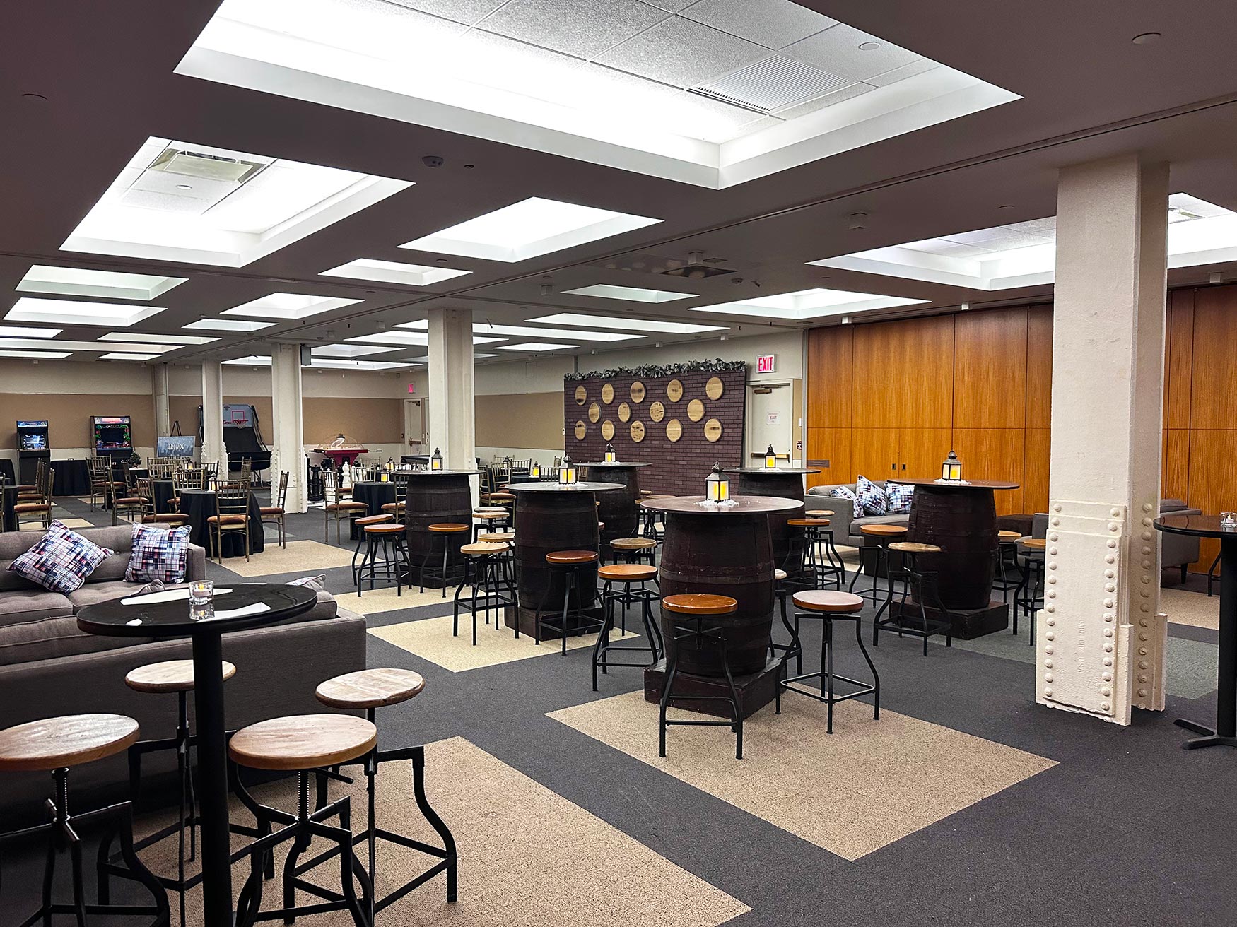 Situated on the lower level, the concourse is designed to hold meetings, breakouts, classes, and events. The space can hold up to 200 guests and can be divided into six smaller rooms for breakout sessions. This level can also be used to host cocktail hours for clients utilizing the Grand Mezzanine for their reception.