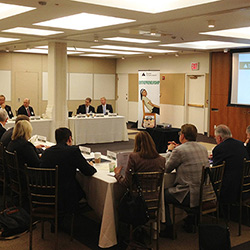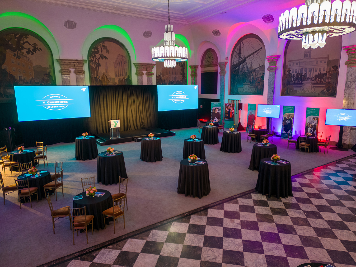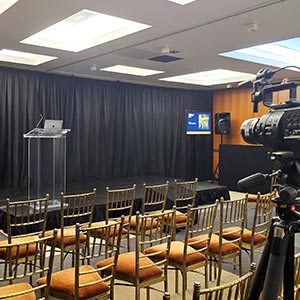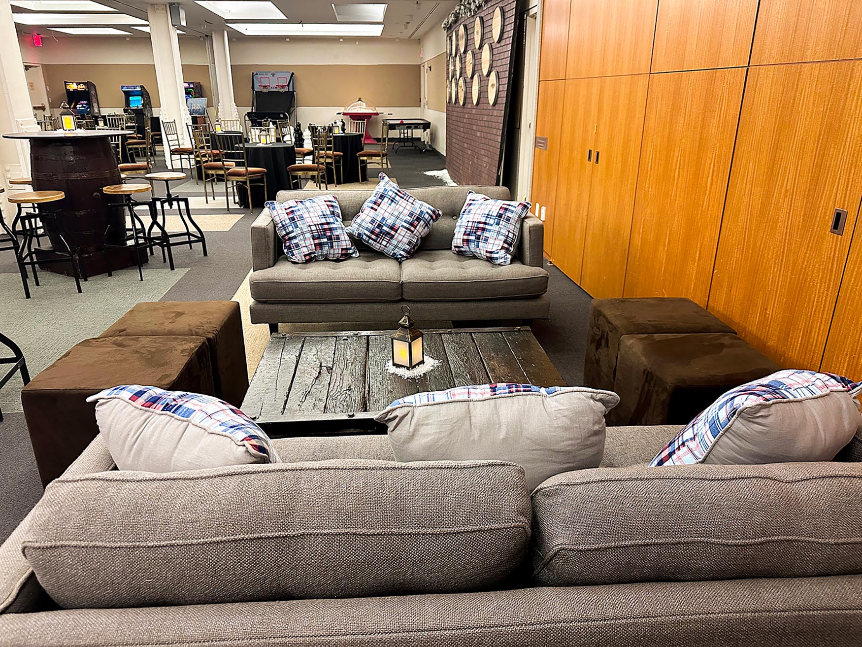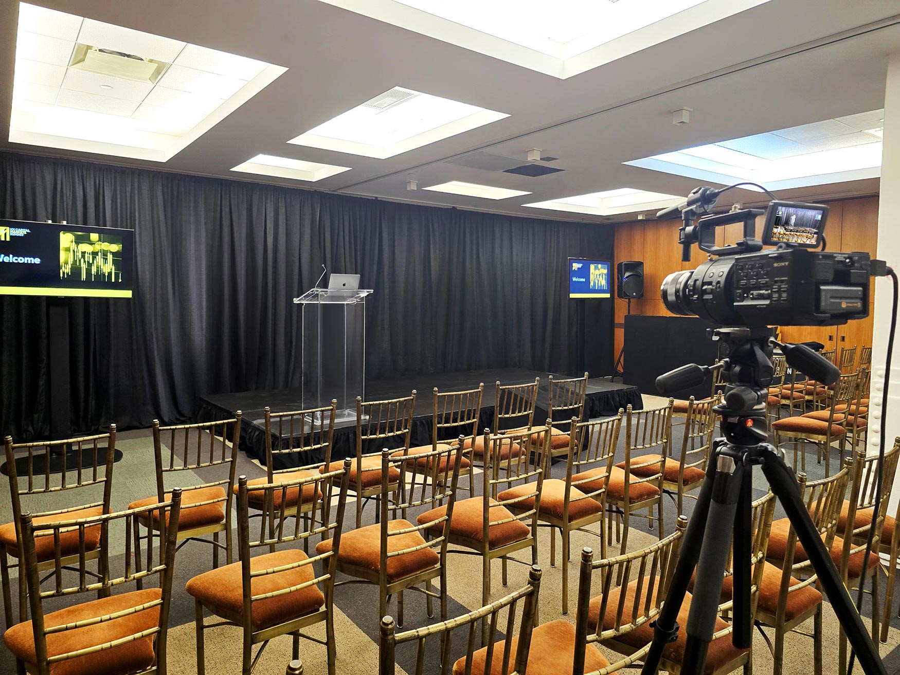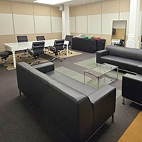 Situated on the lower level, the concourse is designed to hold meetings, breakouts, classes, and events. The space can hold up to 200 guests and can be divided into six smaller rooms for breakout sessions. This level can also be used to host cocktail hours for clients utilizing the Grand Mezzanine for their reception.