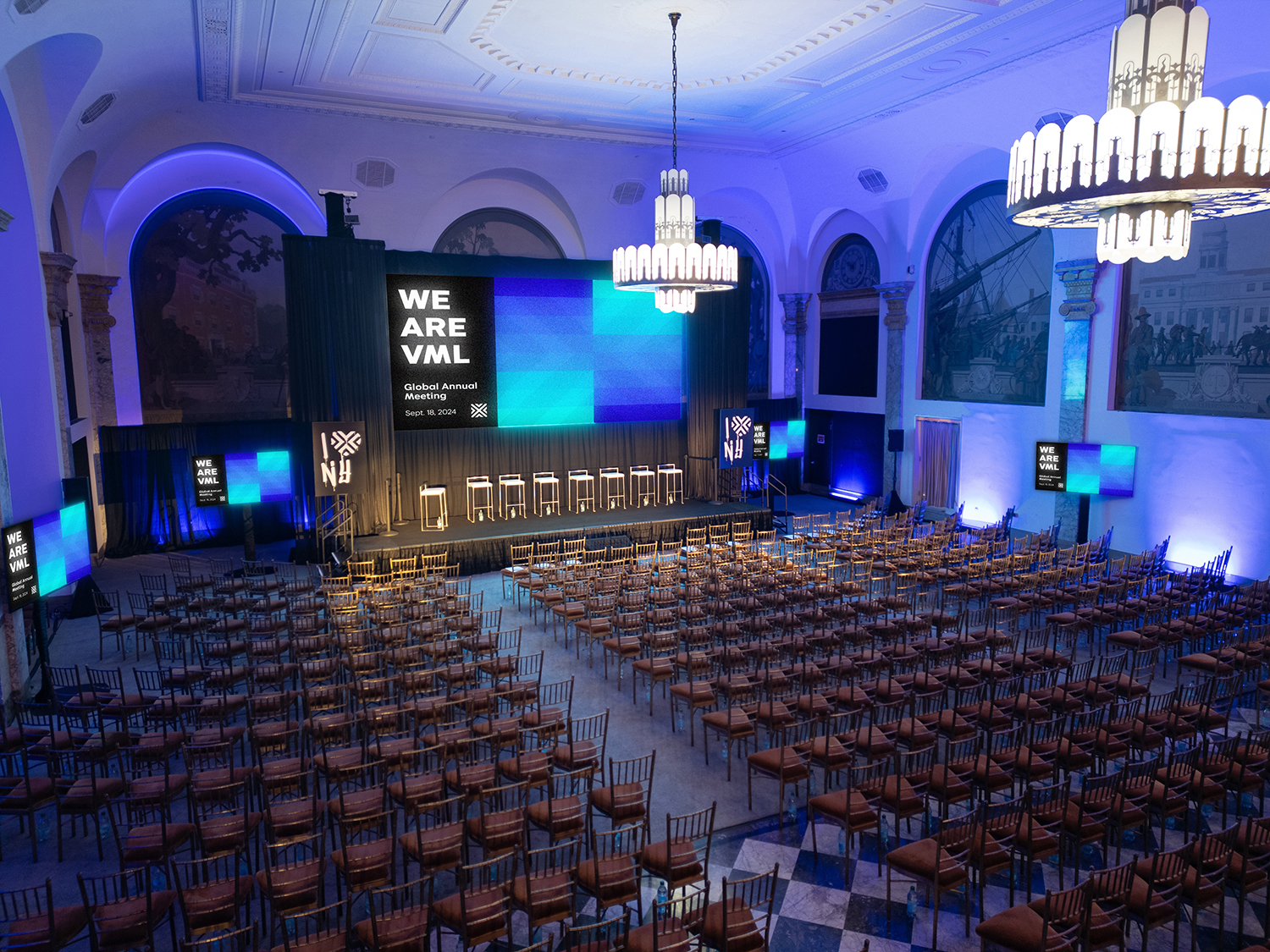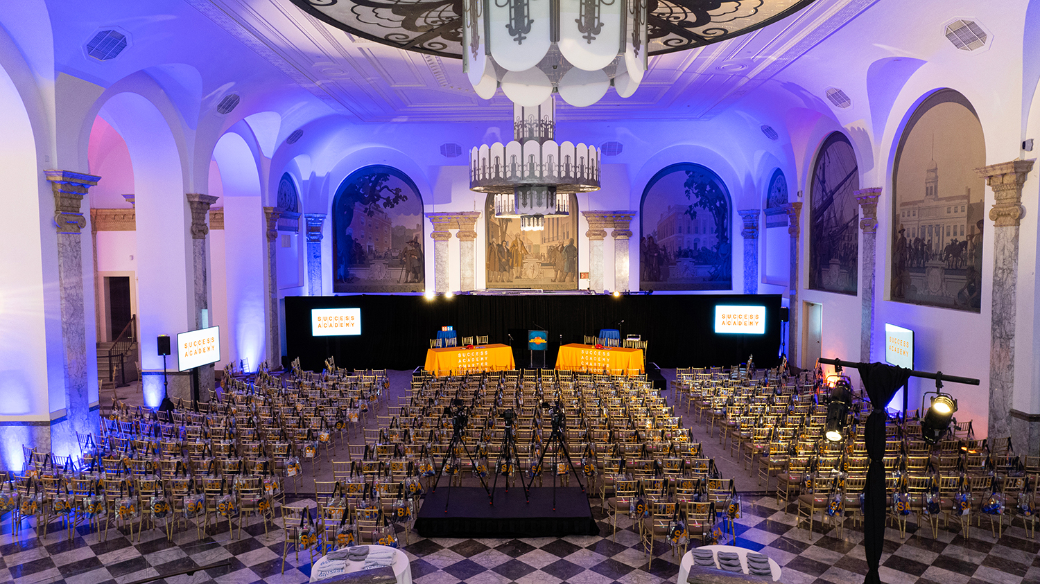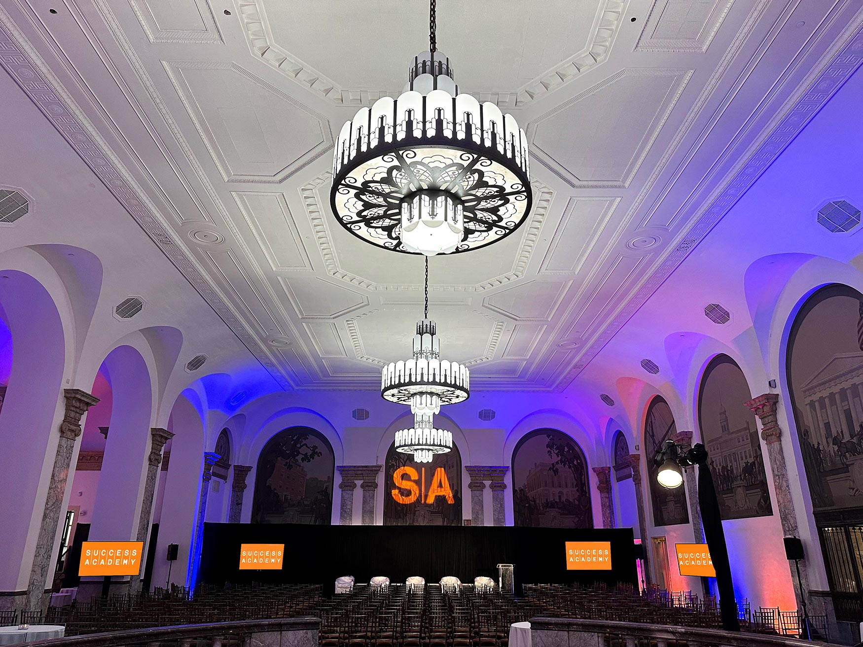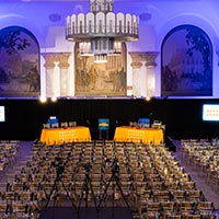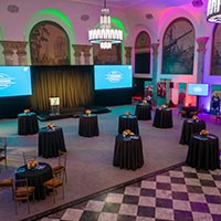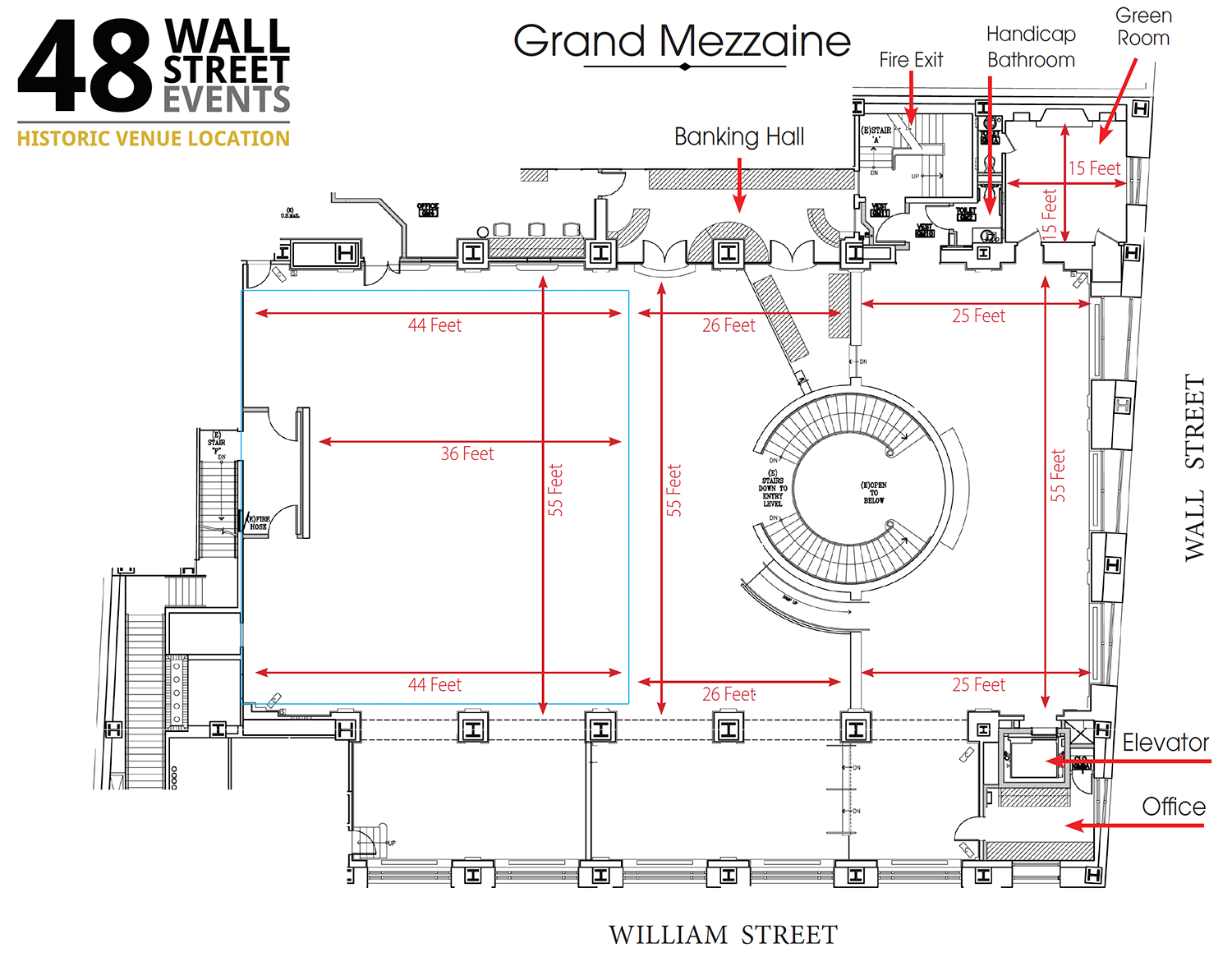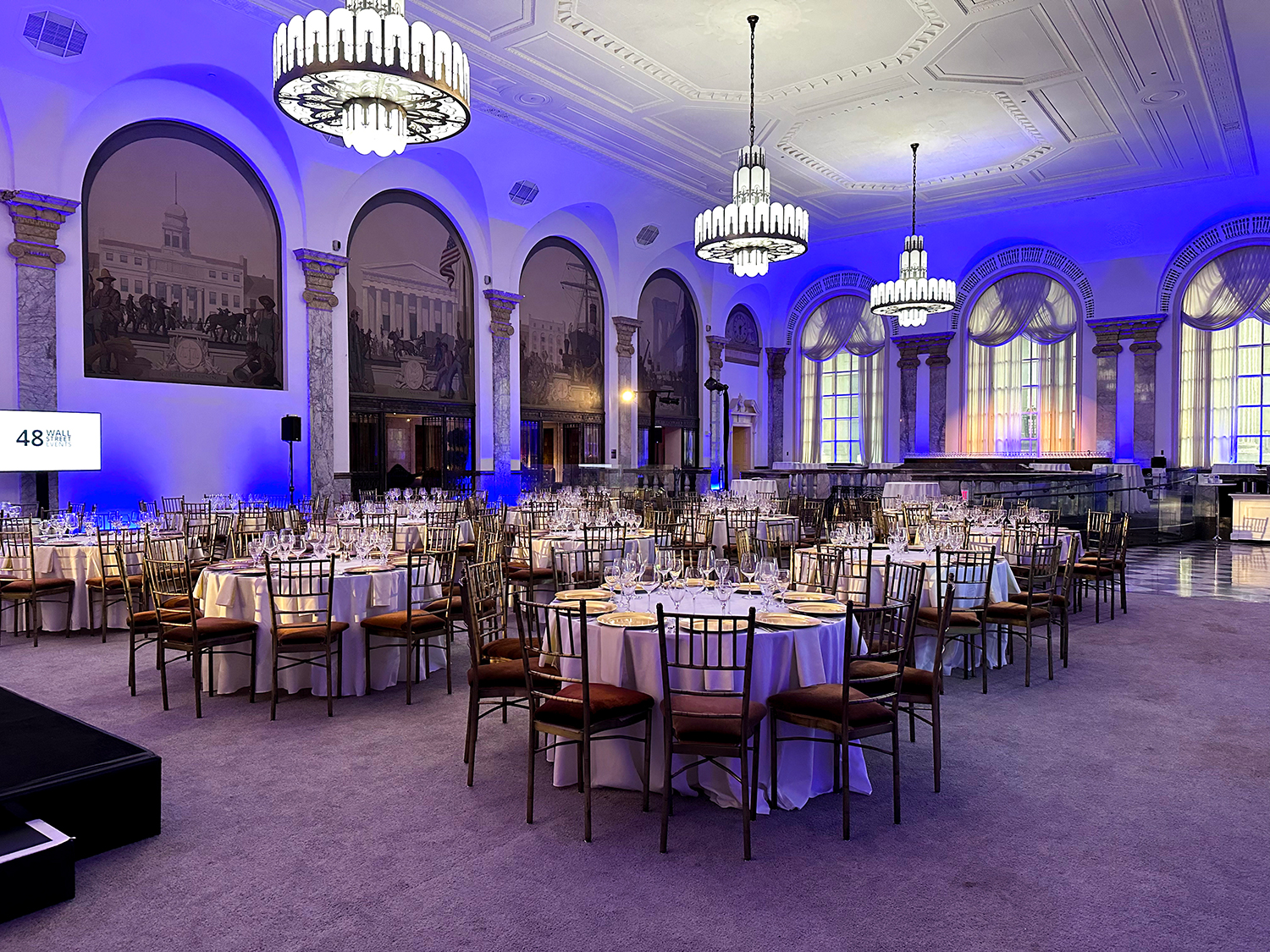 When entering 48 Wall Street, you are greeted by a grand marble staircase. Let your eyes gravitate upward toward the impeccably crafted ceiling and oversized chandeliers. This is 48 Wall Street’s Grand Mezzanine Banking Hall. This space has retained much of its original 1920’s architectural detail; from the 30-foot ceilings to its beautiful Palladian windows. The Banking Hall can host and accommodate a variety of events, which include seated dinners for 350 guests or a cocktail reception for 500 guests. The space can also be divided to your liking to create a more intimate setting for smaller events and meetings.
