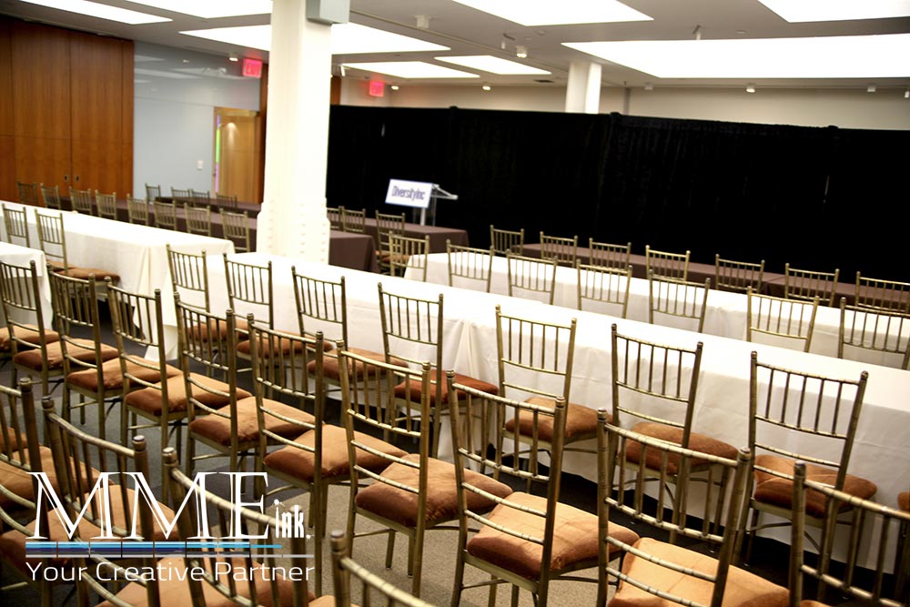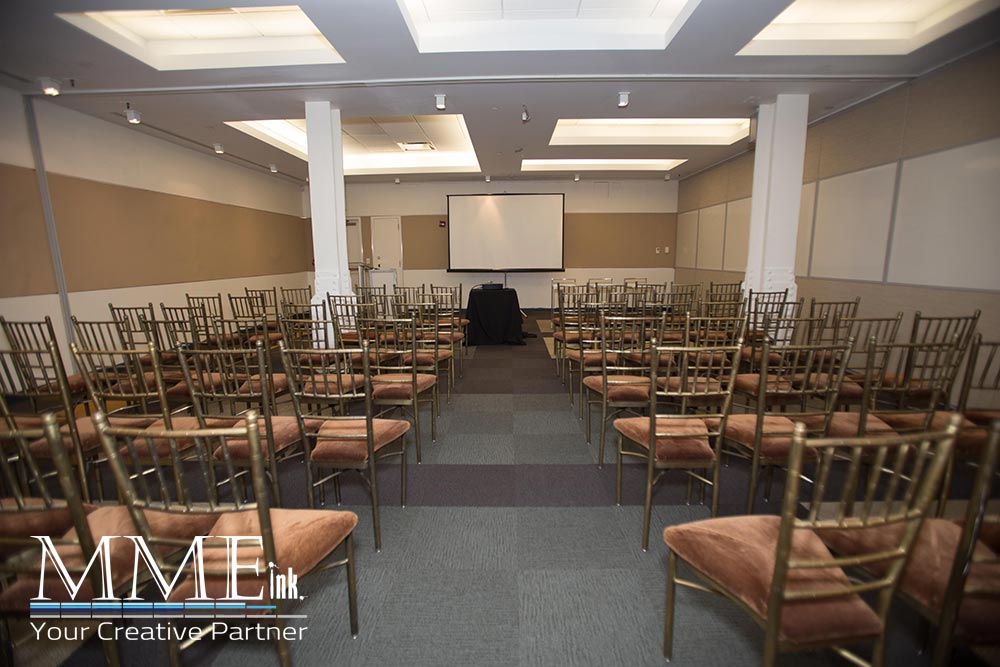 Situated on the lower level, the concourse is designed to hold meetings, breakouts, classes, and events. The space can hold up to 200 guests and can be divided into six smaller rooms for breakout sessions. This level can also be used to host cocktail hours for clients utilizing the Grand Mezzanine for their reception.
