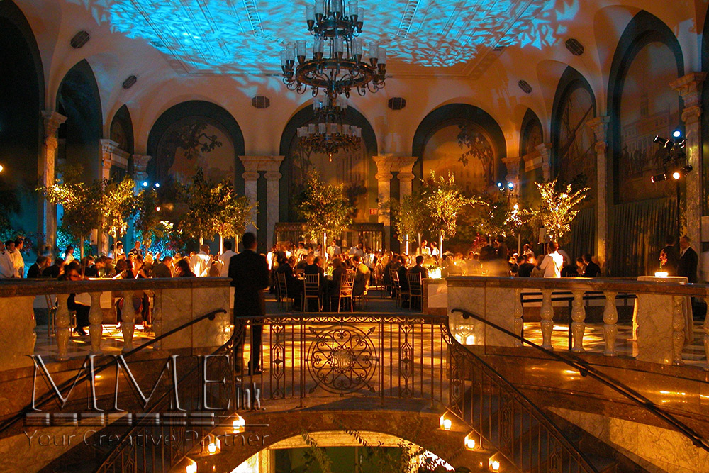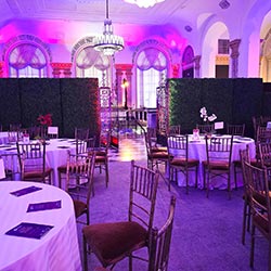 When entering the main entrance of 48 Wall Street you are greeted by a grand dual marble staircase. Let your eyes gravitate upward toward the impeccably crafted ceiling and oversized chandeliers. 48 Wall Street's Grand Mezzanine Banking Hall has retained much of its original 1920s architectural detail; from the 30-foot ceilings to its beautiful Palladian windows. The Banking Hall can host and accommodate a variety of celebrations, which include seated dinners for 325 guests or a cocktail reception for 500 guests. 48 Wall St can accommodate all types of celebrations in any theme or style.